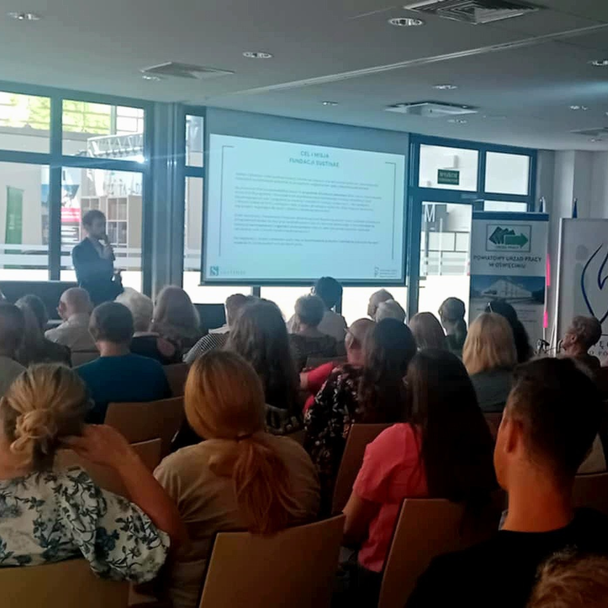 W dniu 5 czerwca 2025 r. mieliśmy przyjemność uczestniczyć w seminarium „Aktywni mimo barier – Twoja droga do zatrudnienia”, które odbyło się w Miejskiej Bibliotece Publicznej im. Łukasza Górnickiego „Galeria Książki” w Oświęcimiu. Spotkanie zostało zorganizowane przez Zakład Ubezpieczeń Społecznych Inspektorat w Oświęcimiu oraz Powiatowy Urząd Pracy w Oświęcimiu. W wydarzeniu udział wzięli przedstawiciele wielu instytucji działających na rzecz osób z niepełnosprawnościami – w tym PFRON Oddział Małopolski, Powiatowe Centrum Pomocy Rodzinie oraz liczne organizacje pozarządowe.